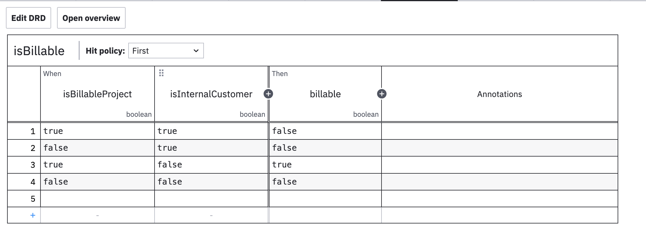 DMN — Billability decision table